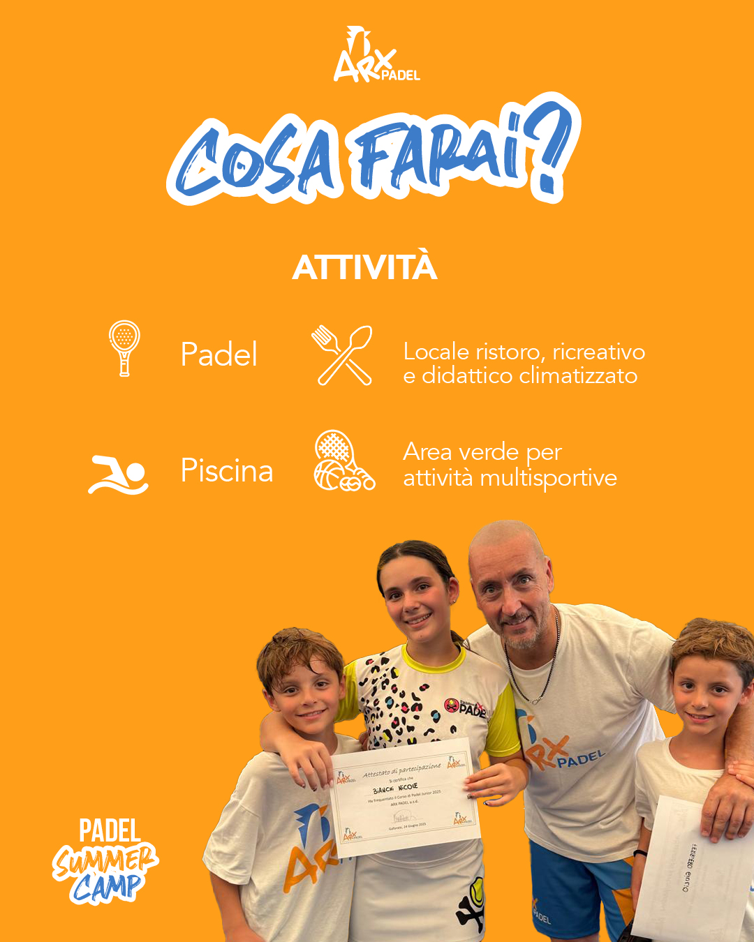 Allora sei nel posto giusto: sta per tornare l’Arx Padel Summer Camp! 🐔